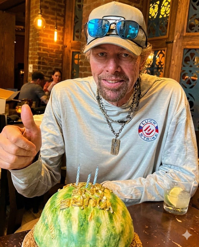 Toby Keith’s final birthday wasn’t marked by the flashing lights of an arena or the adoration of thousands of screaming fans. Instead, it took place in the quiet sanctuary of his home, stripped of the celebrity armor he wore so well. The scene was heartbreakingly simple, yet profoundly beautiful. There was no grand catering or industry party—just a humble, watermelon-shaped cake, a glass of water, and the few souls who knew the man behind the music.
